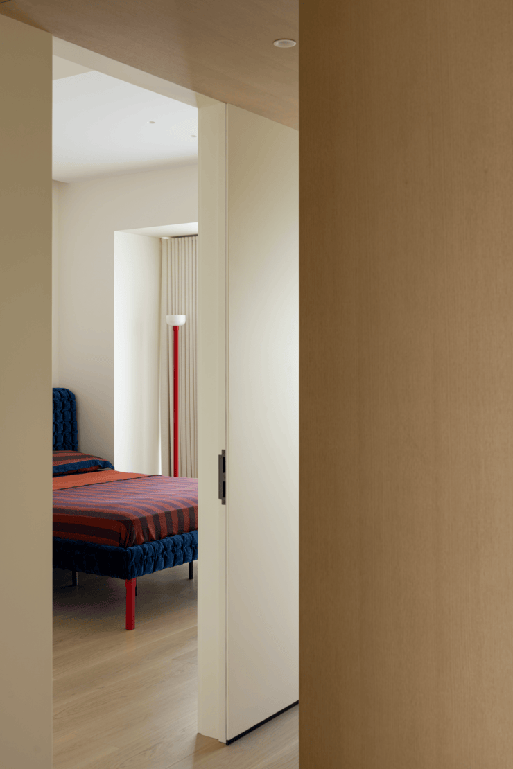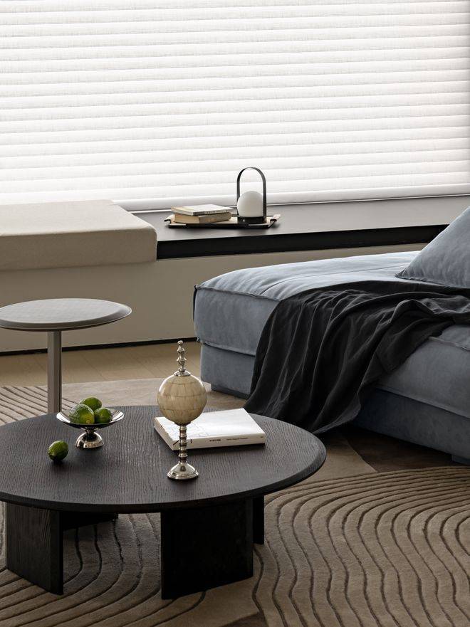 中央的B&BCamaleonda模块组合沙发,以岛状布局重构空间逻辑,双向陈设的低椅背设计。一面朝向书柜电视墙,一面衔接餐厨区。让场景切换随心意而生,既保持空间通透感,又以功能分区提升使用效率。
