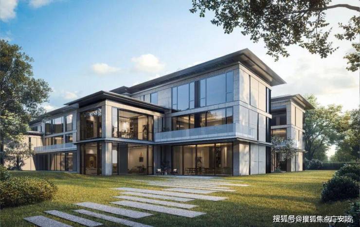 建筑风格:现代东方坡地墅,依山而建,干挂石材+LOW-E玻璃,公建化立面,不沿主干道、静谧私密