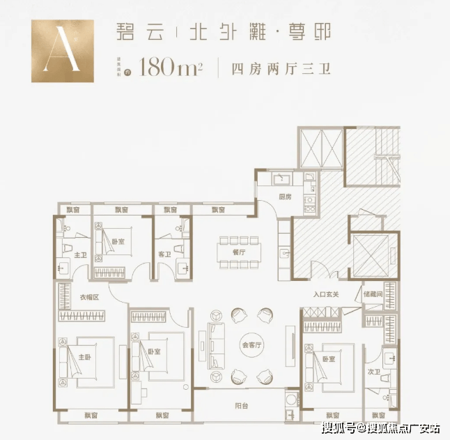 建面约235㎡4房2厅3卫:约7米超大横厅,三卧室朝南,LDKB一体格局,约60平社交会客厅,全屋飘窗通透采光、大尺度景观阳台,超30平至尊套房主卧、双南套房、全明三卫设计、高规格精装标准。