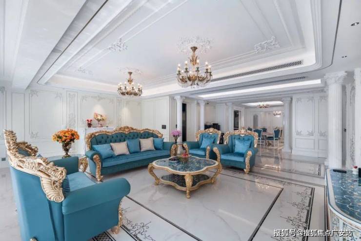 法式风格非常注重对称性,通常以一个视觉中心点,如壁炉展开布置,围绕这个中心点进行对称布局,营造出恢宏的气势和奢华的居住空间。
