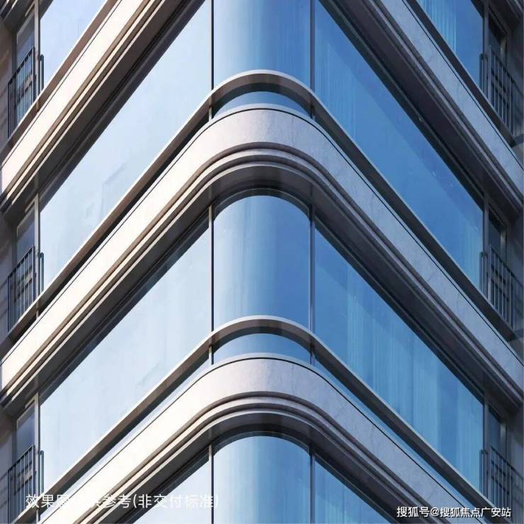 站在远处仰望,整栋建筑宛如一件定制礼服,优雅而高贵。鎏金塔冠、弯弧铝板、弧形钻幕带来视觉动感。