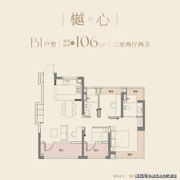 建面约106㎡户型, 更是以宽尺大横厅和270°的转角飘窗赚足了眼球,阳光与清风自由流淌,居住舒适度全面提升。LDKB一体化设计,在餐厨区布局万能中岛台,打破了厨房与餐厅的界限,延伸烹饪空间,增加收纳空间,更将社交功能融入其中,重塑中国人的情感场域。