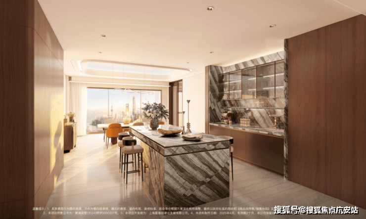 更细节的是,西厨吧台采用“东方木纹石材”,独特纹理与质感让每一次咖啡手冲都成为“生活美学的展示”。