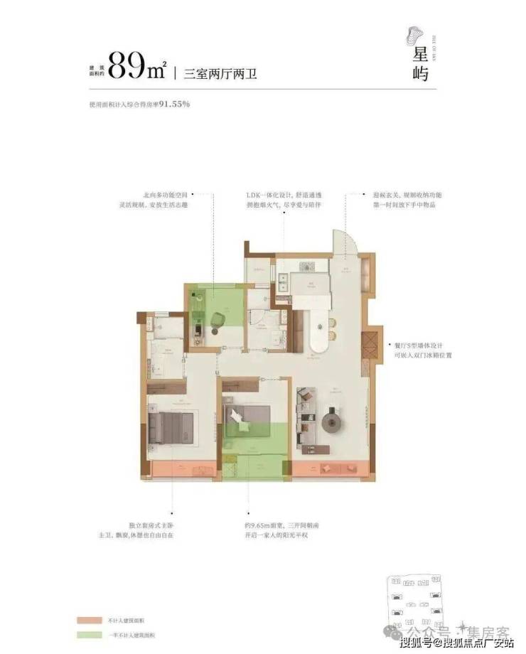 1.空间革命:最大约100%得房率,主城区89方回归