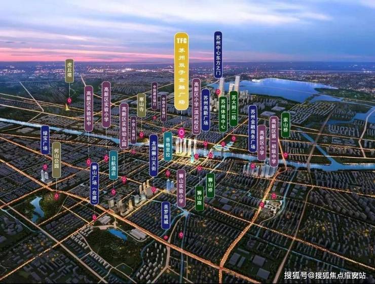 本项目在狮山 桥下,京杭大运河旁,占据了新区狮山板块的核心地段,坐享新区繁华商圈,紧邻姑苏古城风韵,集人文精神和高品质生活为一体,将打造为狮山板块乃至苏州市具有代表性的地标建筑。