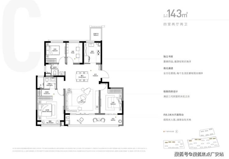 建面约143平方米的四居室户型,成交价格在330.0-350.0万之间。这些房源分布于29#、31#、30#等楼栋,采用2梯2户的布局,私密性更强。同样拥有3.00米的层高和17层的总楼层,让居住空间既舒适又宽敞。
