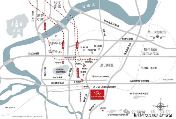 ---项目择址钱江南岸,咫尺沪昆、绍诸高速,经风情大道1小时可达萧山主城,经时代大道1小时直抵滨江核心、钱江新城和西湖,通达八方,一览城市繁华。