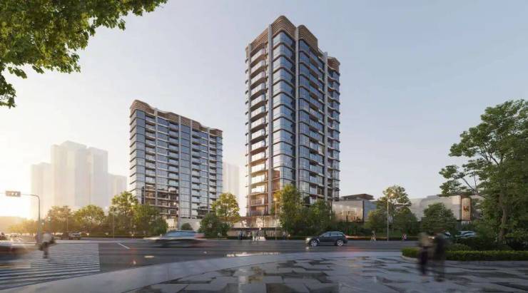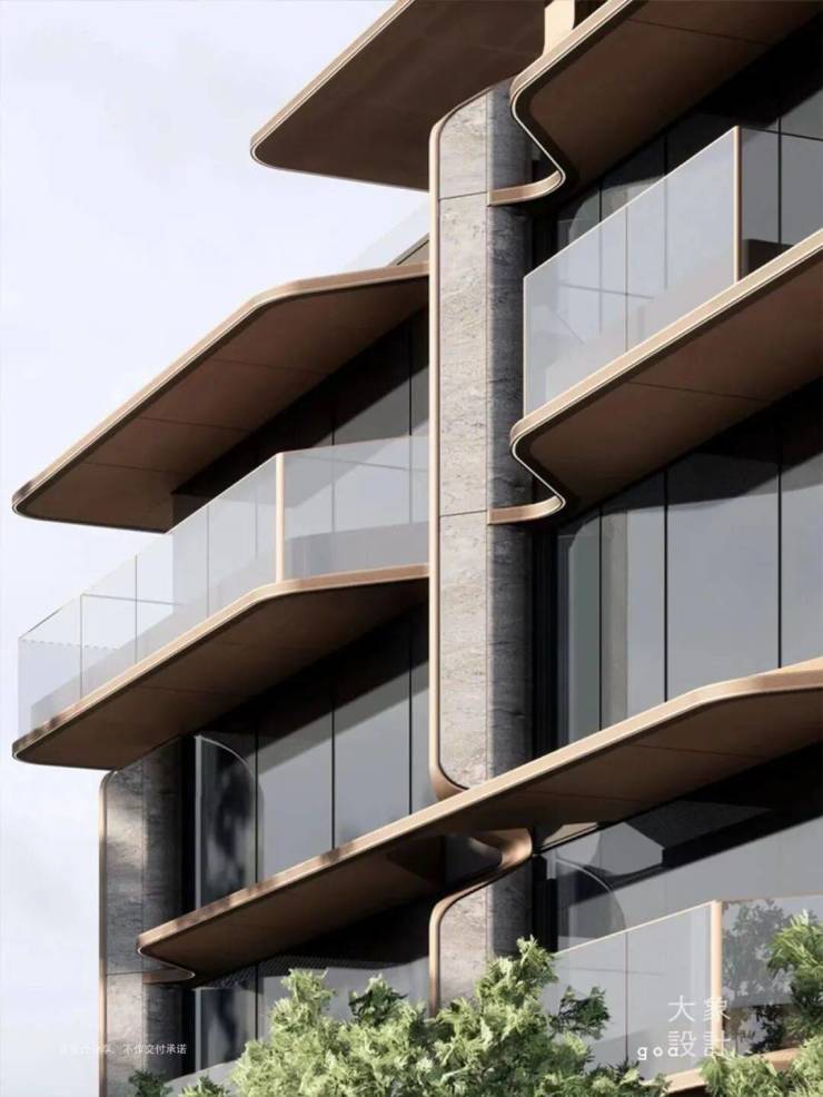 通过石材、防铜色铝板、不锈钢和曲面玻璃的精心搭配,采用国内住宅罕见的穿插镂空、楔形线角等细节工艺,让建筑本身成为一件扎根于徐汇文化土壤的巨型艺术雕塑。