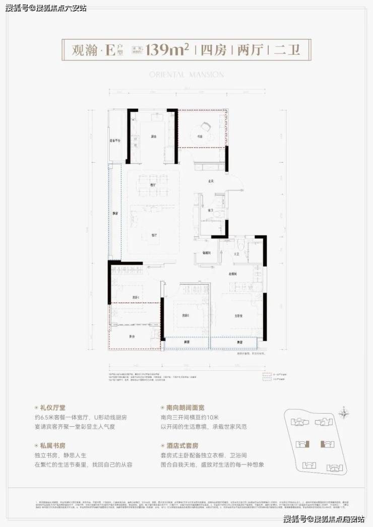 建面约120平方米户型则设计了四房且四开间朝南,南向采面极佳。而建面约139平方米大户型则打造四房两厅两卫,分为横竖两款,全部为边套,两梯两户设计。该户型得房率高达约93%,南向3个卧室,采光优良,客厅面积达到约37平方米,充分满足二胎家庭或三代同堂的居住需求。
