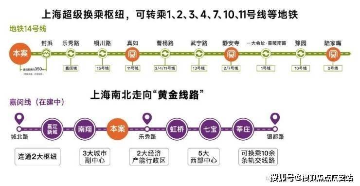 交通能级不断跃升:14号线和嘉闵线(在建中)双轨交汇,直线距离约350米14号线地铁口,14号线为高能级地铁线,5站普陀,直达静安,且始发有座,出行舒适;黄金走廊嘉闵线加速建设,约3站虹桥枢纽,未来可速达七宝、徐家汇、莘庄等核心区域。项目周边开泰路即将建成,绿野谷二期路段、骏达路、童家桥路、昌瑞路、涟澜路已启动建设,预计2026年建成。