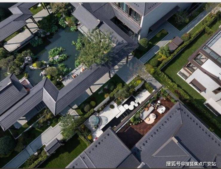 新中式,院墅,中式的坡屋顶与通透的大玻璃立面结合,将东方的传统意境与国际化的审美融合,像极了当前的杭州也像极了此刻的龙坞,既老又新,既传统又现代,既有西子湖的温婉又有钱塘江的磅礴,碰撞出一种全新的审美与生活方式。溪映听庐隆起的屋脊,仿佛群山的绵延,大地与人文交织出全新的风景。