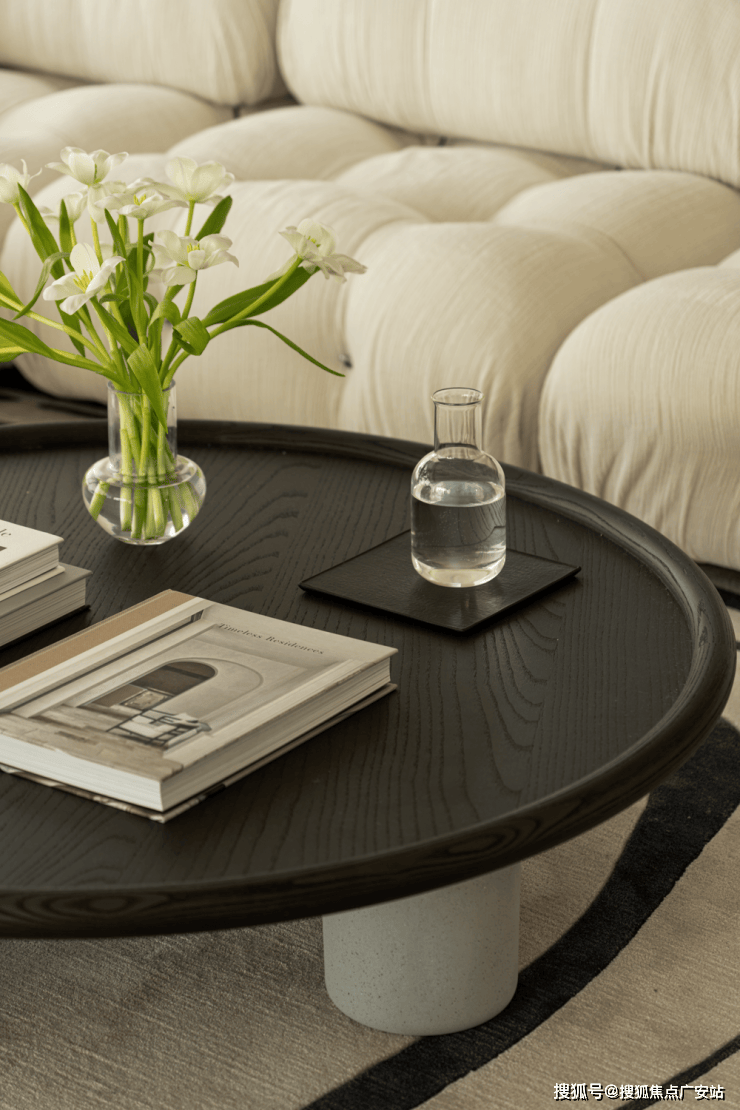 全开放式设计,岛形沙发打破边界,让交流随光影自由发生。午后的光线从侧面洒落,家具被赋予立体的光影层次。