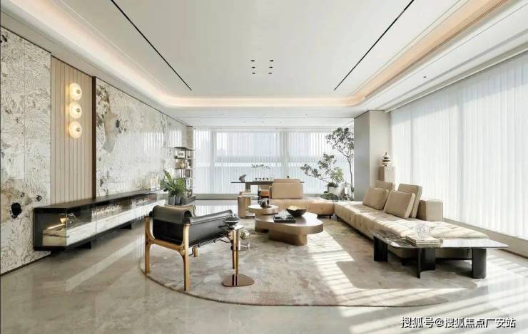 而李嘉诚御用设计师梁景华的390m²正厅,电视背景墙是意大利潘多拉奢石,甚至延伸到了空中花园,电动开启扇也是大平层中极为稀缺的,当窗户徐徐移下,正好就成了一道玻璃栏杆,变成开敞式空中花园。单单是这扇窗户,就快顶得上一辆特斯拉,而潮博奢侈的用了2辆。