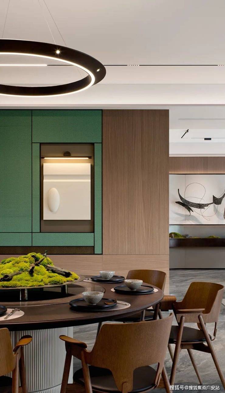 为匹配这片空间的奢阔,琚宾选用臻稀青玉作为背景墙安置于客厅中轴之上,将玉石与当下的生活方式相融,进而打造出蕴藏东方空间美学的私域。