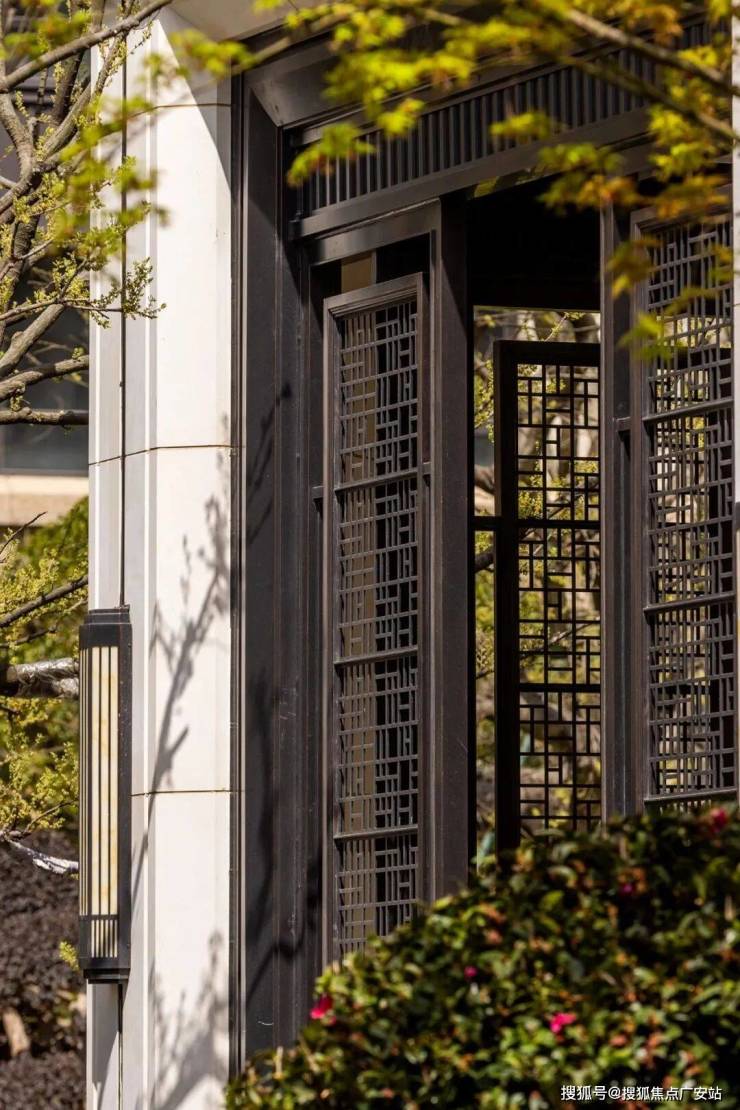 就连庭院格栅也经过造型化处理,镂空图案随日光移动形成动态光影,每一处细节都堪称“微缩艺术品”。