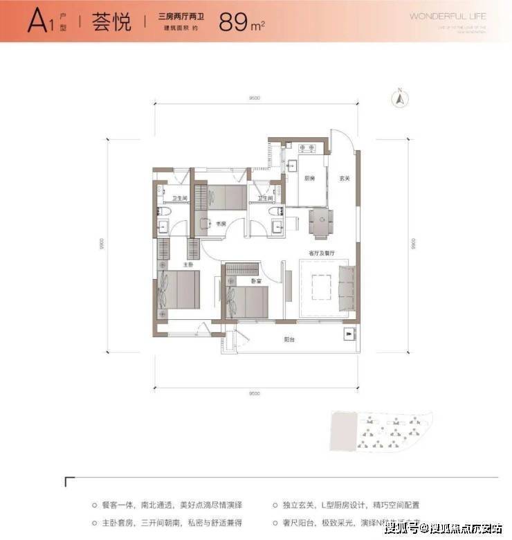 · 超强产品力:建面约89㎡3房2卫,近10米南向面宽+约6.3米大阳台,为300万预算的购房者打造出了更舒适的空间尺度感