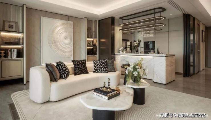 为一块奢石弧形工艺,投入翻倍的成本,整屋坚持用一种昂贵的木饰面贯通始终,从而实现整体艺术风格的统一。客厅背景墙的“烟雨江南”天然大理石,不同于传统平面背景墙,通过弧度及立体的造型处理,并镶嵌不锈钢材质,对于金茂而言,比奢石昂贵的,是让奢石真正与空间气场融为一体。空间的本质,归根到底是承载着生活的内容,在生活方式上,璞元亦在追求一种全新的理念,将更多空间赋予在客餐厅公区空间,倡导家庭成员的和谐、美好相处,这种源于国际视野的居住理念,亦缩影着璞元骨子里的“国际范”。