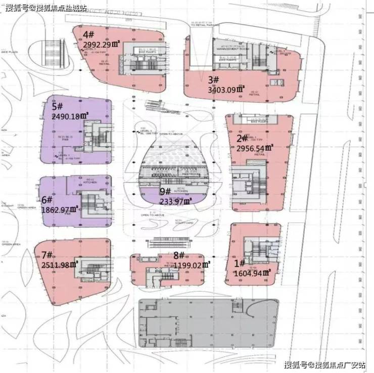 总部云端办公41层(3至43层)约9.86万平方米,单层约2500-2800平方米。
