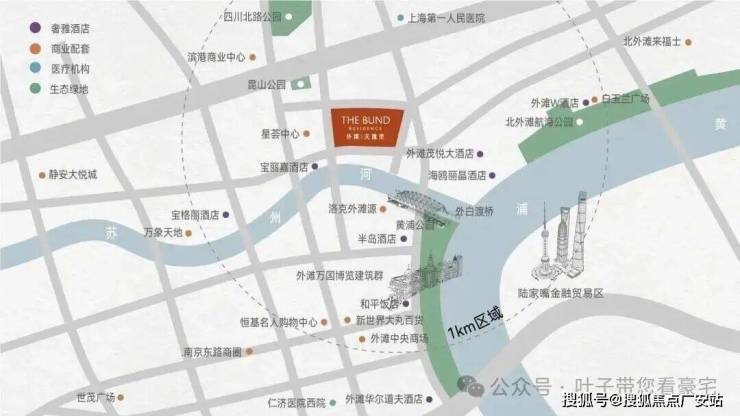 再看项目的位置,选址于黄浦江与苏州河交汇处,距离上海著名的外白渡桥仅约260米,家门巷口的这道湾就是黄浦江精华之所在,从这里可以直接步行至外滩。这里是上海市中心真正核心的优质地段!