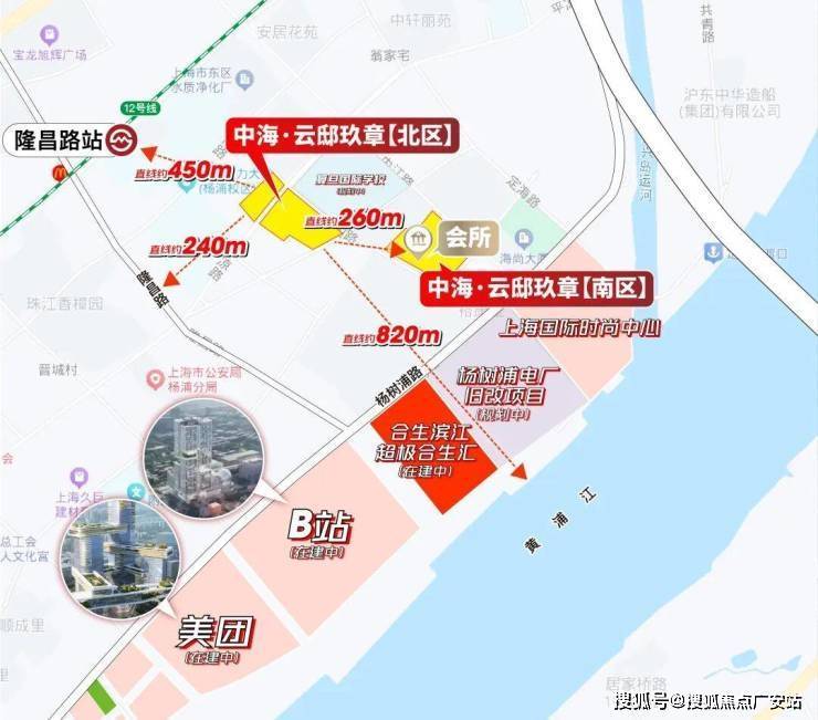 在售新房中距离江岸最近项目,直线仅约500米!一路之隔就是超极合生汇、美团、b站,真正杨浦滨江核心商务区,世界级滨水生活就在脚下!