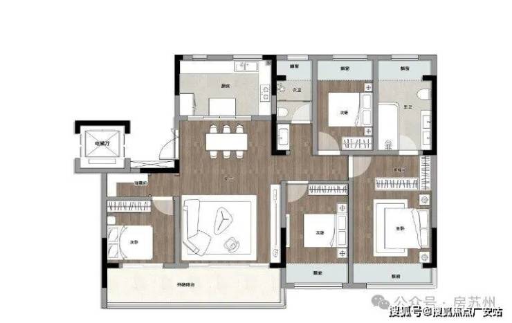 三卧四开间朝南 | 入户电梯独立空间 | 双联阔景阳台 | 超大开间厨房外接餐厅 | 主卧宽奢套房