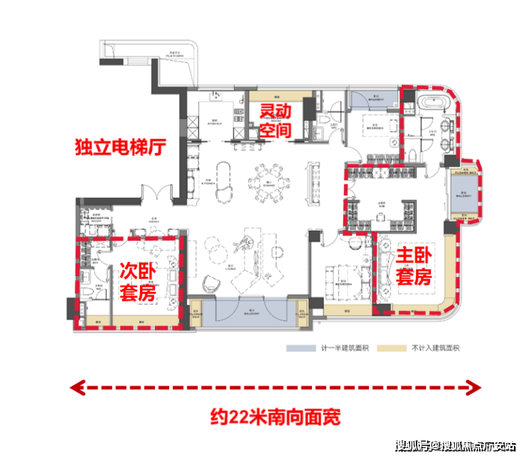 这个户型在不含电梯厅空间的情况下,实得率也有约88%。