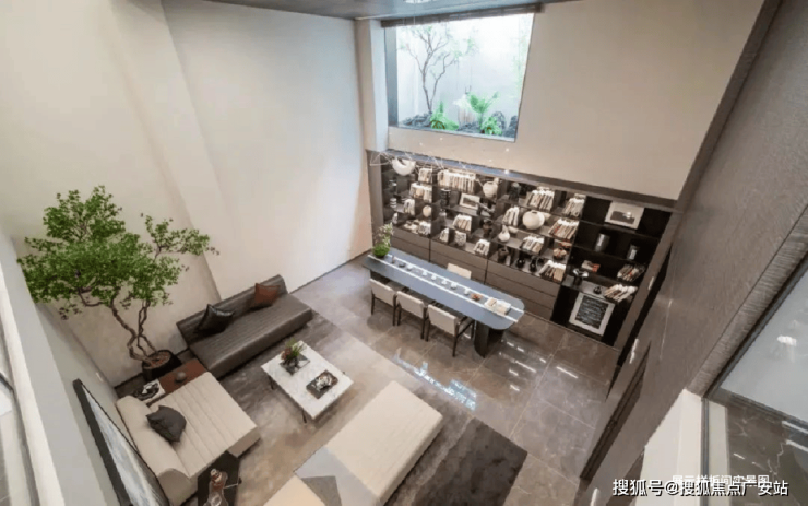 看一眼外立面,白色石材、香槟色的木纹铝板、大面积玻璃的拼接组合,怎么看都不像一个门槛只有400万+的低密叠墅。玉琮水景、山石跌水等等融入景观的大量良渚文明元素,弥漫着专属于杭州的千年气韵。满眼的“越级感”再配上只有1.2的超低容积率,最终才呈现出一座全低密真双叠大盘的样子。