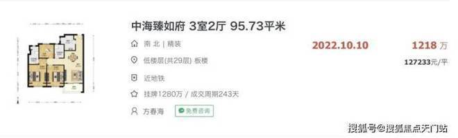 中海臻如府,同样是超高层住宅,房龄较新不超过3年,最新二手成交单价约12.7W/㎡。