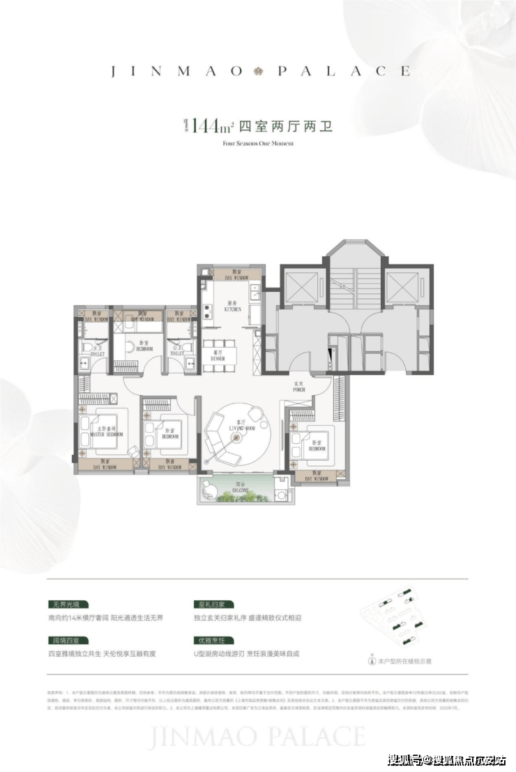 144㎡户型,U型明厨,增强家庭互动;7.2米宽厅,宽敞明亮,容纳全家爱好。