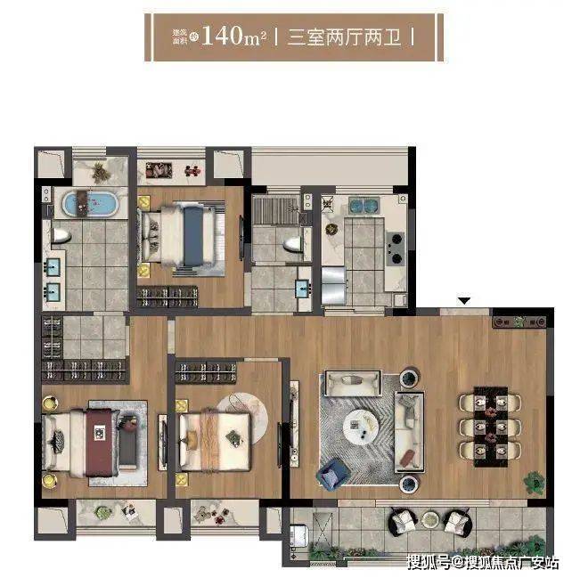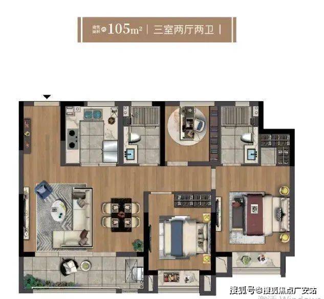 三居:105㎡(3室2厅2卫);