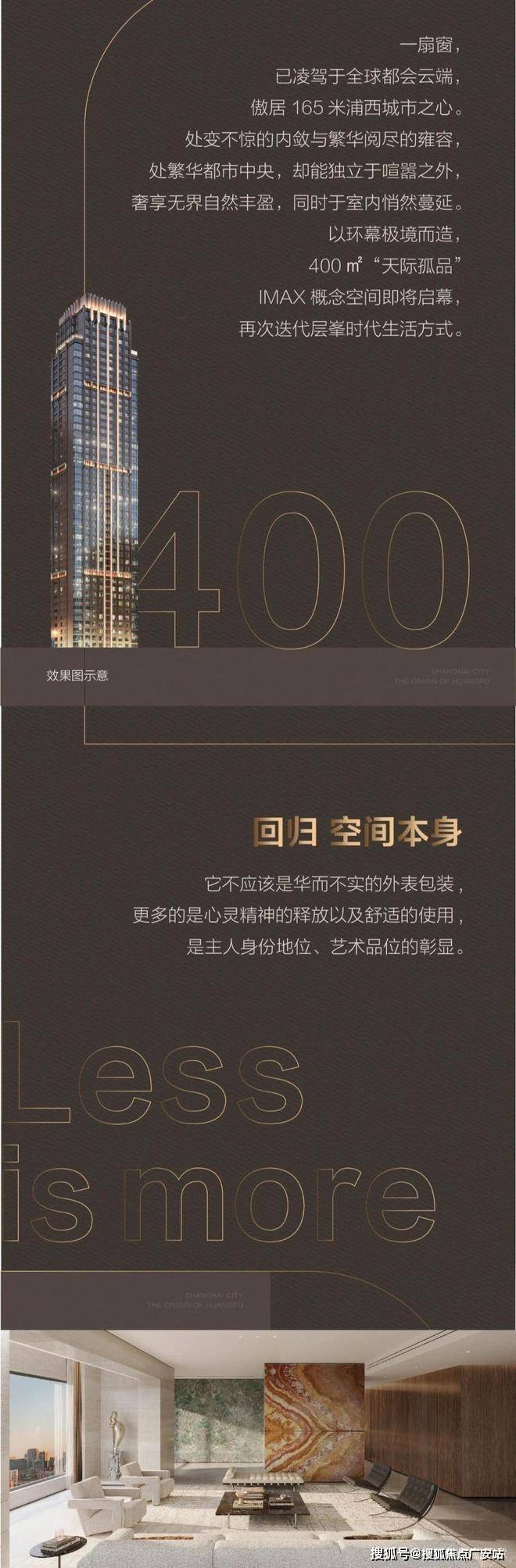 据了解,项目打造位于实体楼栋之中的400云端概念空间将对外开放,彼时可以更直观体验到城市中心超高层豪宅的魅力~