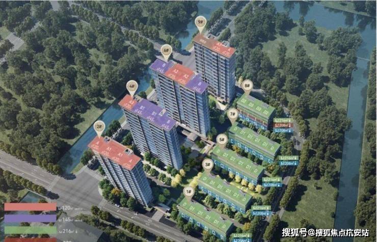 项目规划有4栋14-16F高层及5栋4-5F叠拼,容积率2.0。共计267套商品住宅,主力包括建面约120㎡、145㎡高层户型;建面约208㎡、216㎡叠拼!