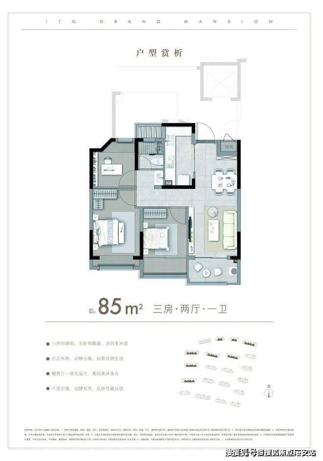 建面约85-96㎡3房
