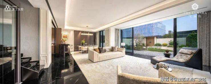 一进“金玉翠屏”:以环岛落客庭院、金檐华盖定调。范思哲黑、Prada绿等奢石为衬,黑松静立,叠水潺潺,归家的仪式感自此开启。