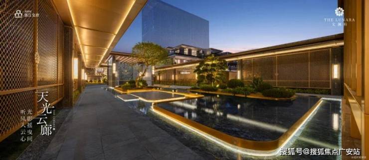 二进前庭“天光云廊”:风雨回廊环抱三重静水,廊下光影摇曳,水面倒映天光,每一步行走,皆成风景;每一处停留,皆可观心。