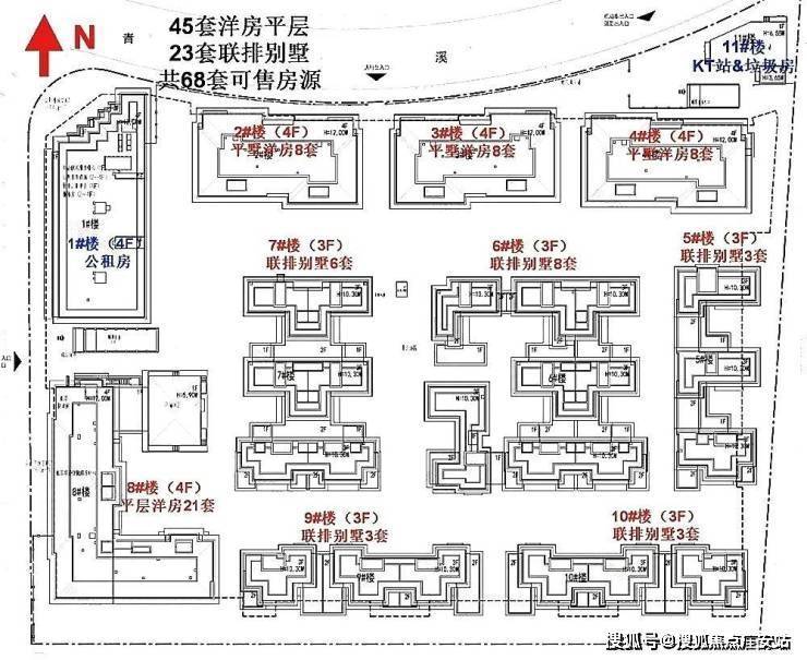 1号楼为保障房,2、3、4、8#为洋房,5、6、7、9、10#为别墅。洋房建面约170-340㎡,别墅建面约430-690㎡