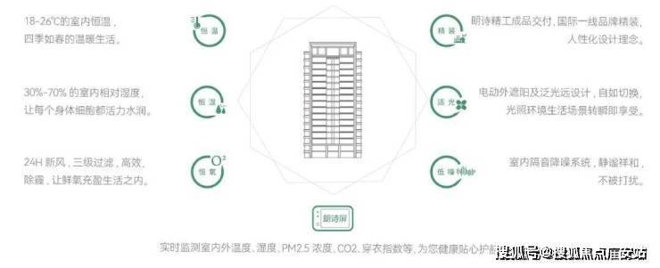 朗诗自有的科技系统,项目围绕“恒温、恒湿、恒氧、低噪、适光”五大健康理念,以十大科技系统为辅,打造的科技智慧住宅。