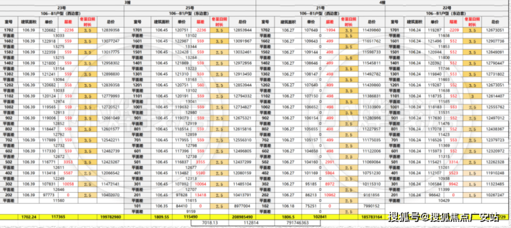 4幢均价约110701元/㎡。基本的定价逻辑和3幢差不多。主要考虑中间套的12层和15层连廊的影响。