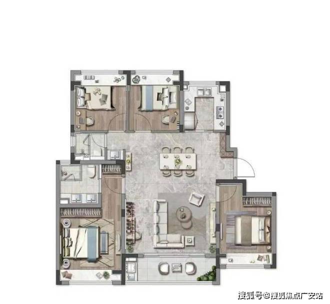 约126㎡4房户型,大横厅设计,让生活有了更多的场景想象。