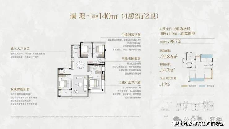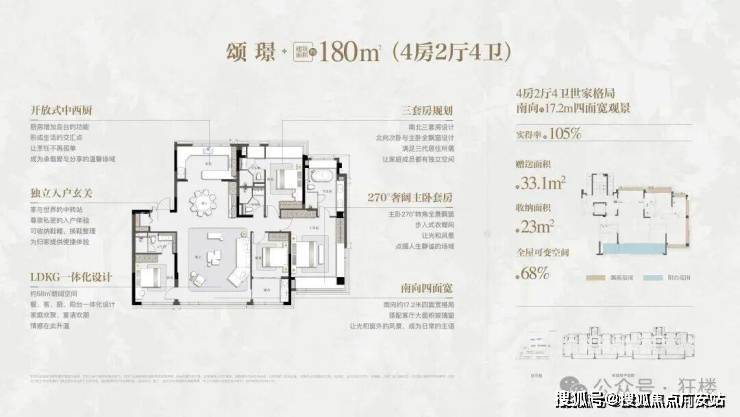 洋房产品也非常可圈可点,户型140㎡起步,全部都是大四房,得房率非常高。