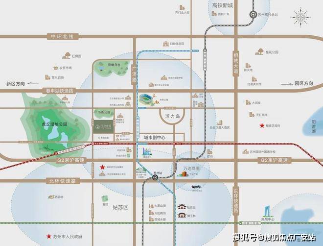 相城是苏州对外的枢纽地,享受苏州北部发展红利,活力岛板块近邻姑苏平江板块,承接主城外溢资源。多重机遇叠加,擘画活力未来。