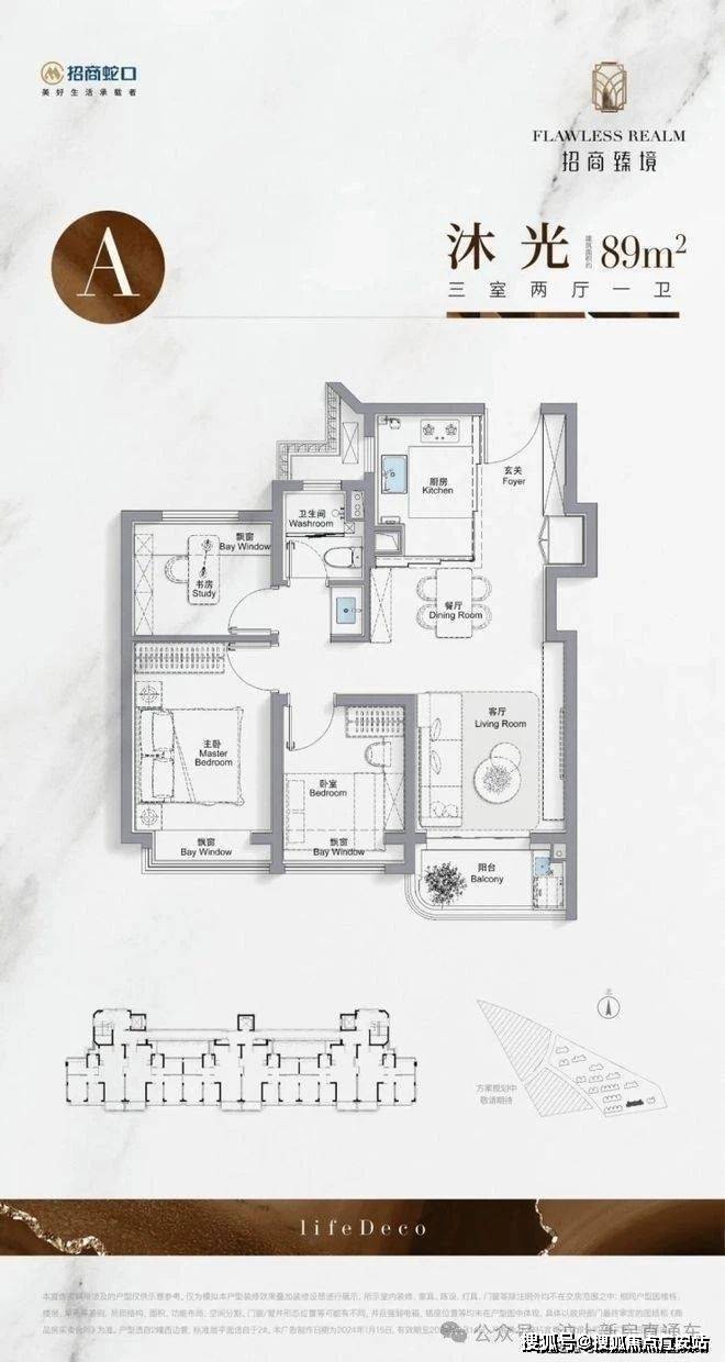 建面约89㎡3房2厅1卫▼