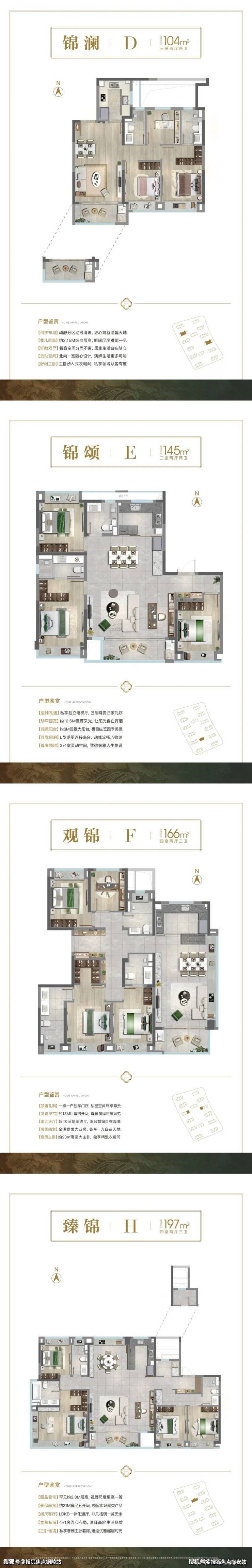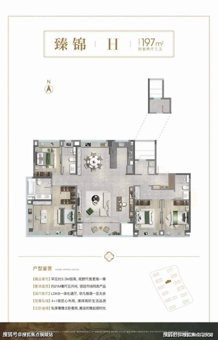 197㎡四房三卫创新设计,6.6 米南向客厅、270°转角飘窗,主卧独立入户动线,兼顾私密性与仪式感。3.3 米层高、一梯一户、非对称 L 型立面设计,铝板 + 玻璃外立面彰显现代美学,细节之处尽显尊崇!