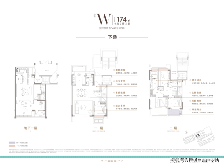 174m²下叠,挑高的宽绰地下室+公共绿地,真正的别墅享受: