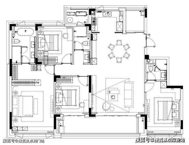这是为美术生打造的270度环幕江景大平层,高楼层赋予的辽阔视野,江景成为空间的天然背景。