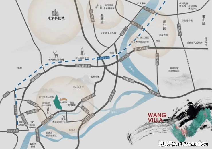 毗邻黄公望金融小镇、眺望云栖小镇;西傍千亩富春山居高尔夫球场/酒店,东依首创奥特莱斯,南临亚运会水上运动中心,融繁华于山水,赋璀璨于天地。