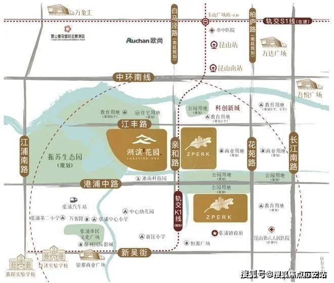 2、K1(规划)+S1(在建)快速联动长三角,邻张浦城市主干道亲和路,纵贯昆山南北;
