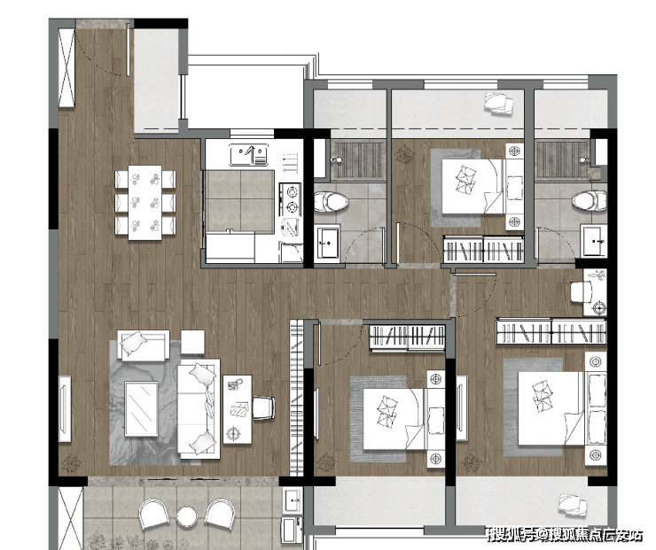 城市绿轴:社区内规划约400米中央景观绿轴及2万方景观绿境,打造“云逸美学七园”,实现推窗见景。
