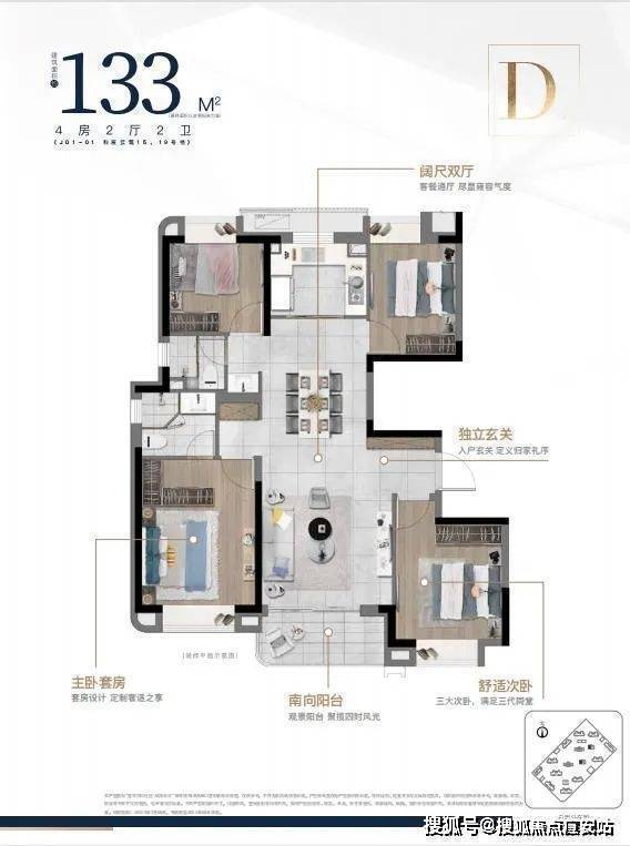 建筑面积约133㎡/143㎡四房两厅两卫,大开间,在满足空间感的基础上,增加户型的功能性,承载生活高舒适度;其中建筑面积约133㎡的四叶草户型,主卧套房设计,三代同堂各有私密天地;南向观景阳台,饱览阳光美景,双卫设计,提供更多私密空间与生活便利。中建玖海云天售楼处预约电话:400-8657-114