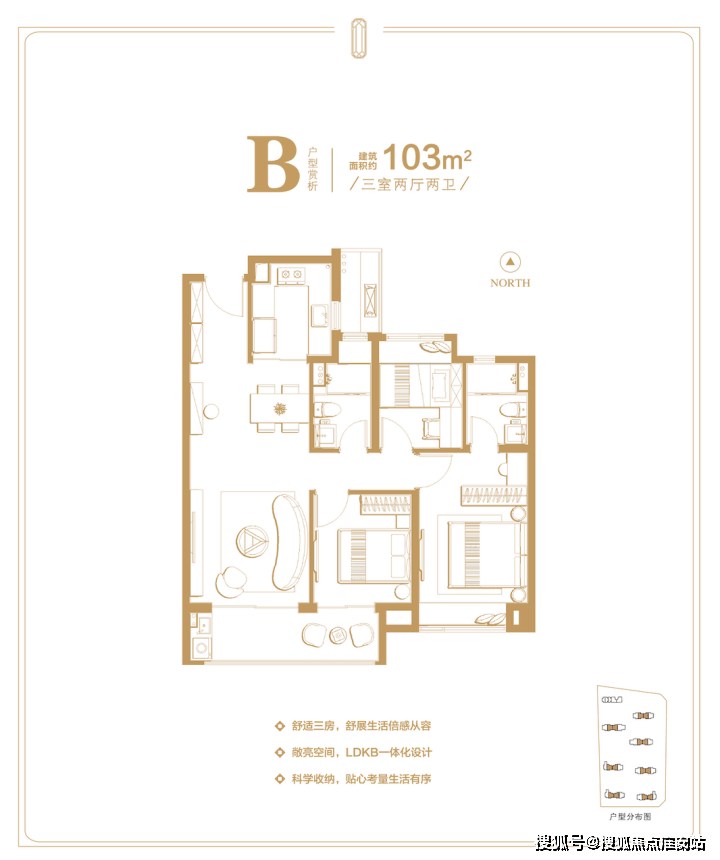项目采用围合式布局设计,社区四至形成有效的社区边界,创造最大约59米楼间距,户户推窗见景。